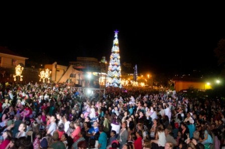 Ainda falta um mês para o Natal, mas o espírito festivo se antecipou e chegou na última sexta-feira (22), em Videira, com a inauguração oficial da iluminação 2013 e com a abertura da Programação Natal da Gente 2013 promovido pela Prefeitura de Videira e pela câmara de Dirigentes Lojistas (CDL). O evento organizado pela secretaria de Turismo e Cultura aconteceu no Largo da Estação e reuniu cerca de oito mil pessoas, que fizeram questão de prestigiar a criatividade de centenas servidores públicos e voluntários, que trabalharam durante mais de 5 meses na confecção da decoração.