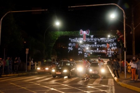 A festa contou com a apresentação do espetáculo cênico Auto de Natal da Família Horn, de Curitiba que encantou o público e um grande show pirotécnico, que durante vários minutos, prendeu a atenção dos visitantes. O Papai Noel, um dos maiores símbolos do Natal recebeu das mãos do prefeito interino Lourenço Becker, do prefeito eleito Wilmar Carelli e do presidente da CDL – Evandro Colle, a chave da cidade. “Que esta bela decoração deixe nossa cidade ainda mais atrativa e que faça aflorar o espírito de renovação, de fé e esperança que o Natal traz junto consigo”, disse Becker que agradeceu o empenho da Comissão Organizadora da decoração natalina 2013.