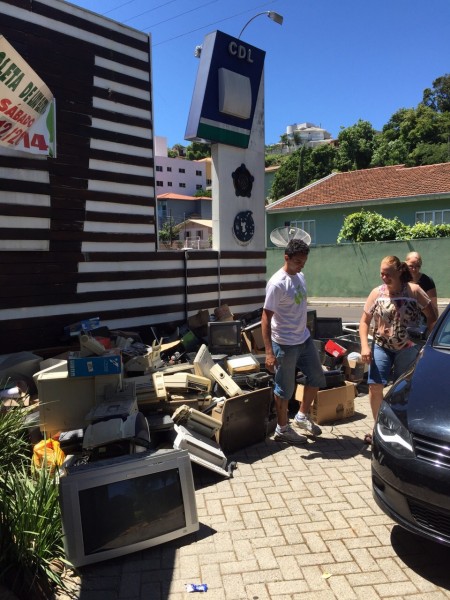 Larissa explica que o recolhimento dos equipamentos aconteceu das 9h as 16 horas em frente a CDL Videira, no mesmo horário em que as lojas associadas faziam horário de atendimento prolongado por causa do Dia D. O movimento foi grande durante todo o dia e o bacana é que pudemos observar que muitas crianças acompanhavam seus pais na hora de entregar o lixo eletrônico, provocando uma conscientização desde cedo em relação ao meio ambiente. Isso deixa a diretoria da CDL feliz, porque demonstra que estamos cumprindo nosso papel social na comunidade onde estamos inseridos.