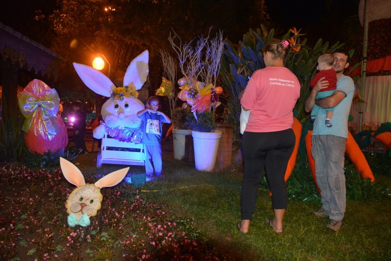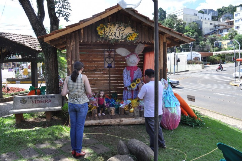 A área central de Videira ficou movimentada no primeiro fim de semana da instalação da decoração de Páscoa 2015. O colorido de ovos, coelhos gigantes, cenouras, tocas, cestas e dezenas de outros elementos que remetem a uma das principais comemorações do país atraiu milhares de visitantes para apreciar o trabalho desenvolvido pela Prefeitura de Videira em parceria com a Câmara de Dirigentes Lojistas (CDL).