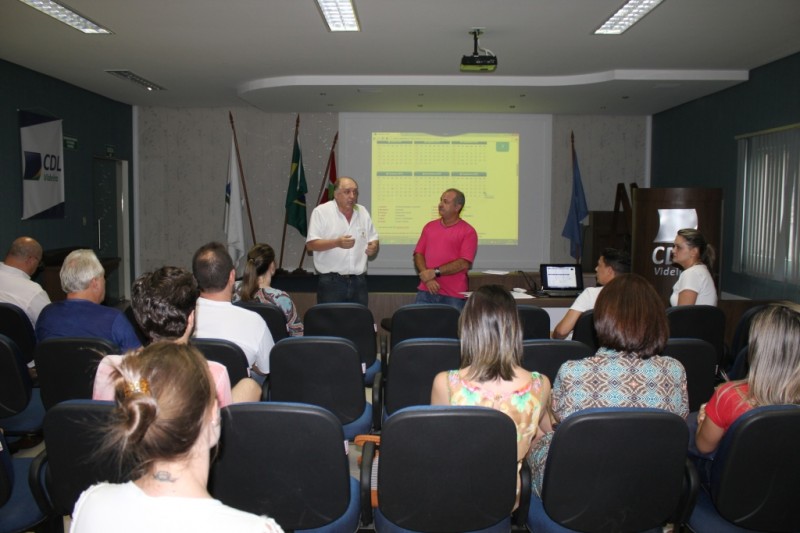 Associados da Câmara de Dirigentes Lojistas de Videira (CDL) se reuniram na noite de quarta-feira (13) para discutir os horários especiais de funcionamento do comércio durante o ano de 2016 e também o reajuste salarial dos comerciários. A reunião aconteceu no auditório Mauro Cesar Pasqual e foi comandada pelo presidente da CDL – José das Neves Olivo e pelo presidente do Sindicato do Comércio Varejista de Videira – Gilberto Boschetti.