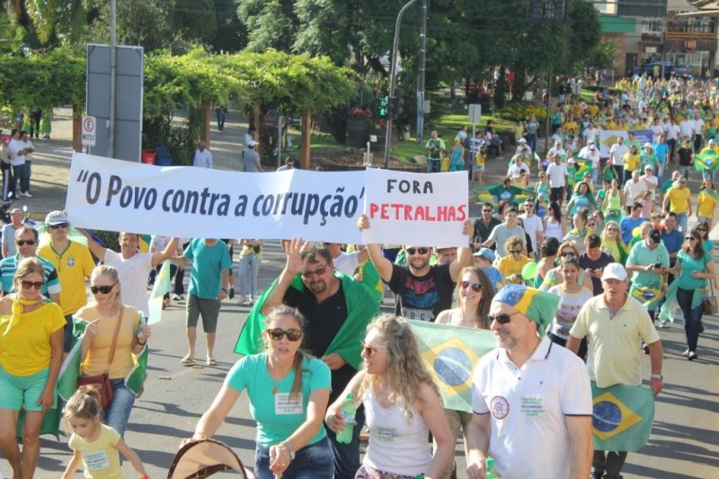 Dados da organização apontam que cerca de dois mil videirenses marcaram presença na mobilização nacional contra a corrupção que aconteceu na tarde deste domingo (13), com concentração no Largo da Estação, no Centro de Videira. O protesto contou com apoio e mobilização de lojistas associados da Câmara de Dirigentes Lojistas de Videira (CDL). O presidente da entidade José das Neves Olivo enalteceu a participação dos associados e de toda a comunidade videirense no ato que é simbólico, mas que reflete a insatisfação de grande parte da população diante da atual situação econômica, social e política do Brasil. Apoiamos a manifestação deste domingo sem envolvimento com questões partidárias. A esperança e o esforço dos lojistas são em favor de um país justo, que seja capaz de valorizar e apoiar seus empreendedores, disse.