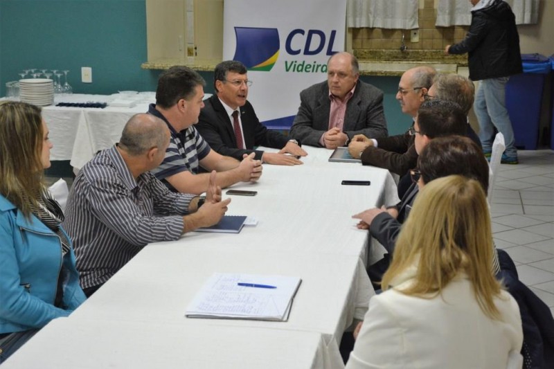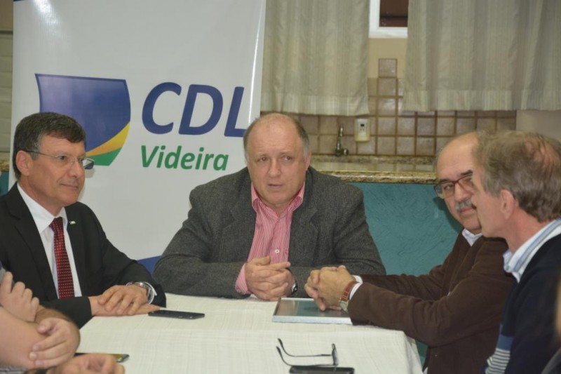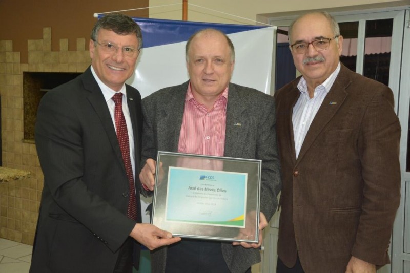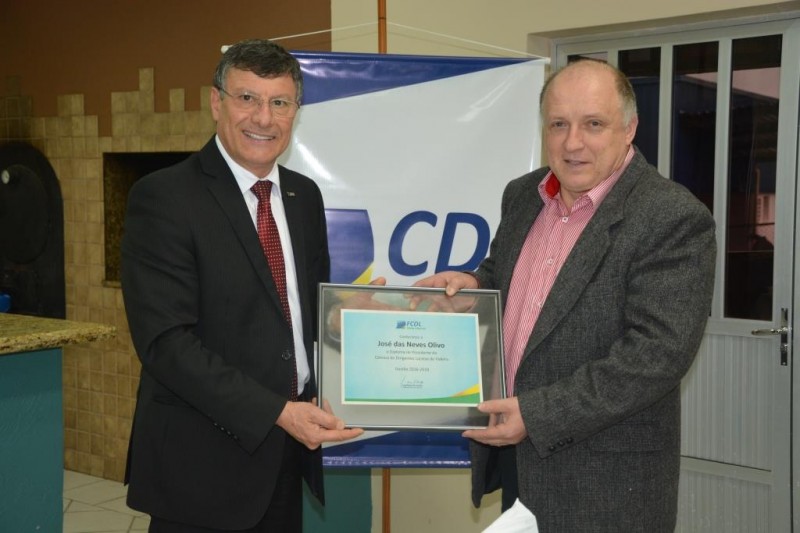 Durante a reunião o presidente da FCDL Ivan Tauffer e o vice-presidente de coordenação distrital, Olair Klemtz entregaram ao presidente da CDL Videira, José das Neves Olivo, um diploma de posse e um pin da entidade. Encontros como este são de extrema importância para a Federação, que sai da capital e vem para a base, e, para as entidades que podem reportar as dificuldades e facilidades registradas no interior. O resultado é crescimento, pois lutamos pelas mesmas causas destacou Olivo.