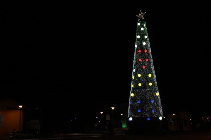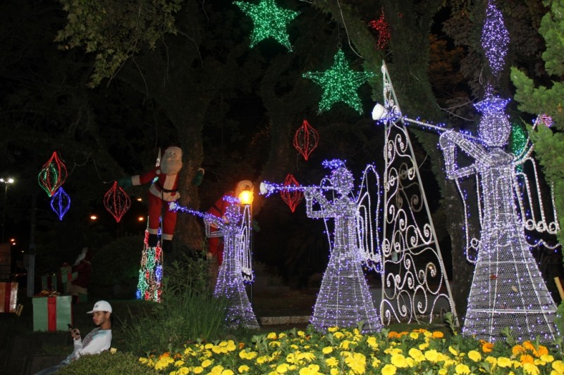 A poucos metros da praça central, também está uma das maiores árvores de Natal de Santa Catarina, com 21 metros de altura. A árvore gigante ganhou uma malha com 300 mil lâmpadas de led que acendem de modo alternado dando oito diferentes movimentos. Fora isso, bolas gigantes e coloridas deixam a Praça Largo da Estação, no Parque Rio do Peixe, bonita tanto à noite quanto durante o dia. A decoração deste ano foi um pouco atípica por conta da crise financeira no país e da lei eleitoral que impediu a Prefeitura de repassar recursos, em ano eleitoral, para entidades. Desse modo, a CDL entrou com recursos para revitalizar enfeites já existentes e contratar as artistas plásticas e a Prefeitura disponibilizou os servidores para a execução dos trabalhos e instalação da decoração. A decoração ficou mais concentrada na Praça, mas coma mesma beleza e alegria de sempre, destacou Olivo.