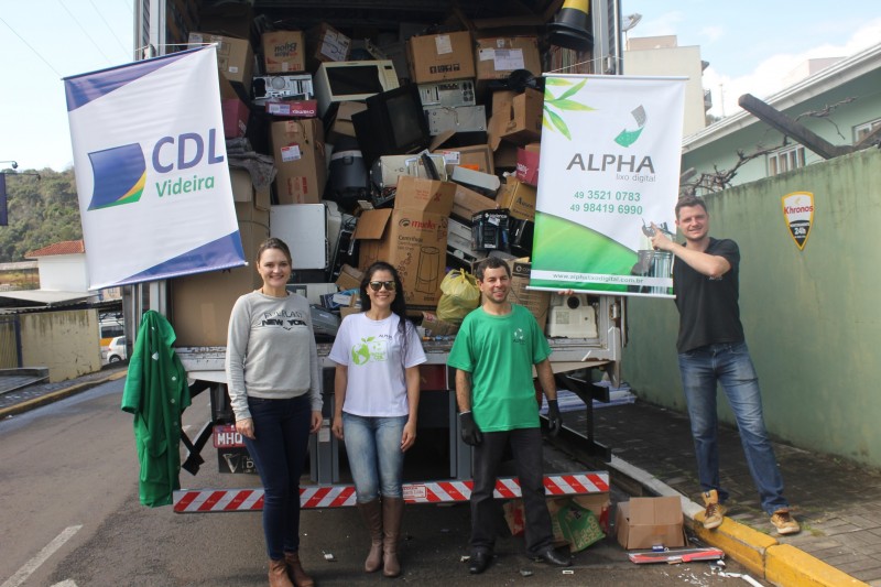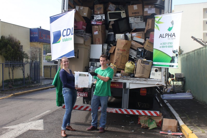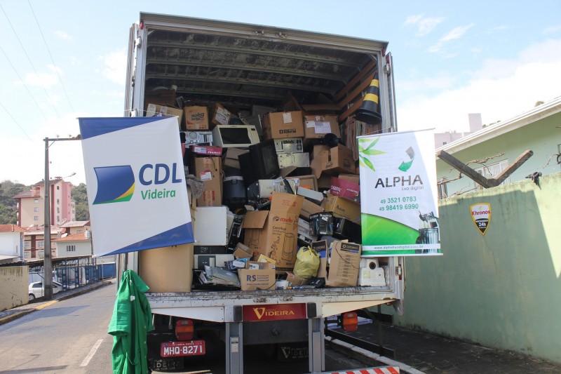 O projeto Recicla CDL que recolhe e dá destinação correta ao lixo eletrônico produzido pelos videirenses acaba de bater novo recorde na cidade. Na edição realizada no último sábado (19), foram recolhidos cerca de 14.300 quilos de equipamentos que lotaram três caminhões. O recorde anterior tinha sido de 14 mil quilos. Com a quantidade recolhida nesta edição, a CDL Videira já contabiliza o recolhimento gratuito de 131 mil quilos de equipamentos inutilizados como computadores, rádios, tv´s, pilhas e os mais variados eletroeletrônicos que já não tinham mais serventia e precisavam de descarte adequado.