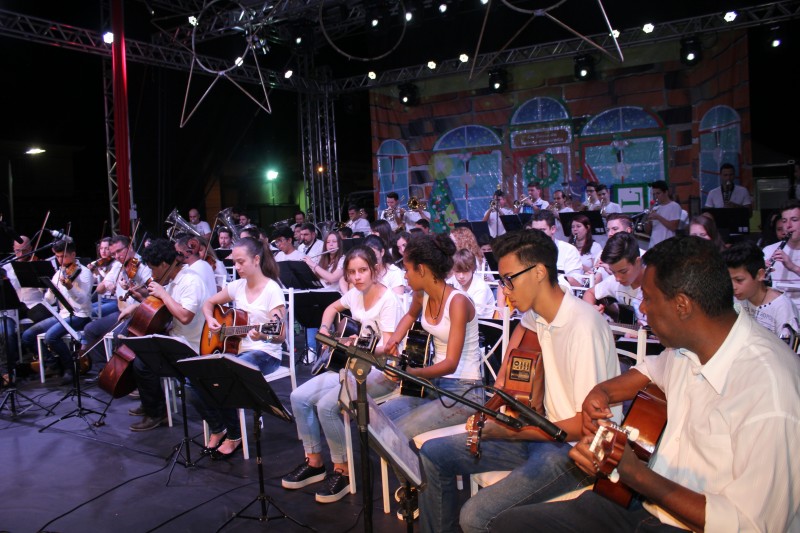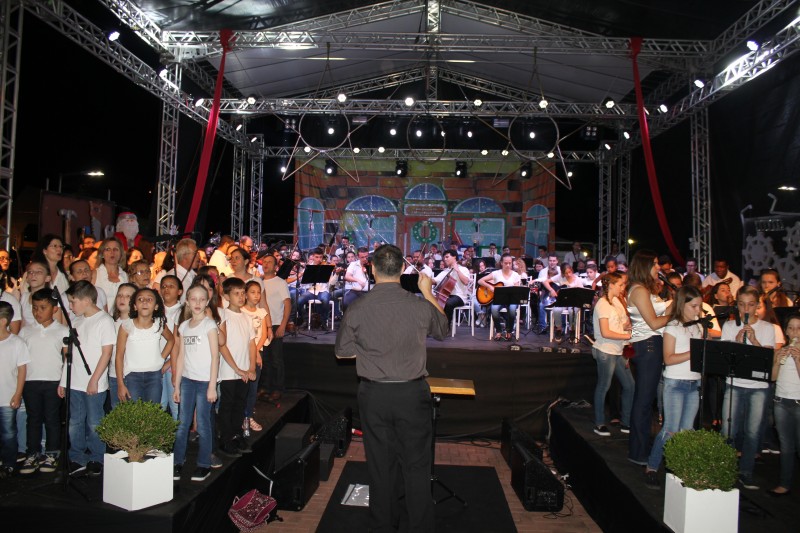A Praça da Estação no Parque Rio do Peixe reuniu muita gente, na noite desta sexta-feira (24), para o evento de inauguração da decoração natalina 2017. A iniciativa promovida por meio de uma parceria entre a Câmara de Dirigentes Lojistas (CDL) e Prefeitura de Videira foi marcada pela apresentação da orquestra e corais do município, por um show de fogos, além do acendimento da árvore gigante e de milhares de lâmpadas instaladas nas pontes, praças e trevos da cidade e a abertura da casa do Papai Noel.
