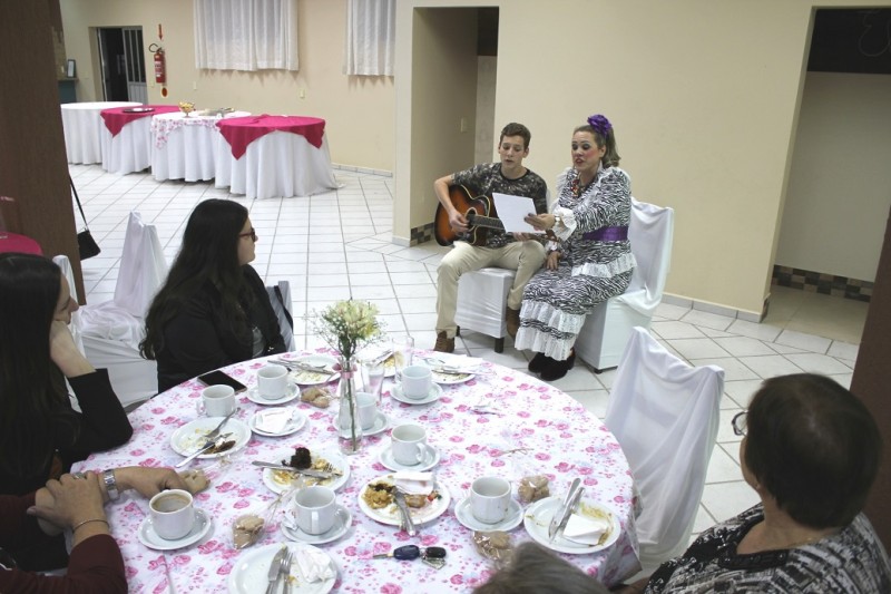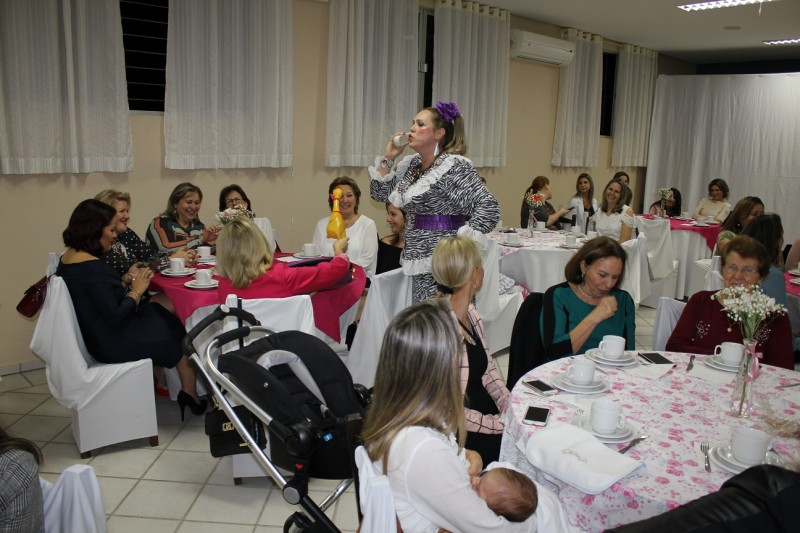 Para divertir as convidadas a CDL também convidou a atriz Christiane Zimmer que fez uma performance teatral que emocionou e arrancou muitos sorrisos das homenageadas. Na sequência o café colonial especialmente preparado pela Família Volpato foi servido com delícias salgadas e doces, além de chás, sucos, café e chocolate quente. Mais uma vez o Café Colonial das Mães foi um sucesso. A CDL fica muito feliz em poder oferecer esse momento especial para as mulheres que já sabem que este evento é planejado especialmente para elas, complementou a diretora cultural, Ivoneti Zani.