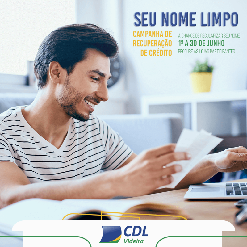 Entrou na reta final a Campanha Seu nome limpo, desenvolvida pela Câmara de Dirigentes Lojistas de Videira (CDL), em parceria com 69 empresas associadas, que aderiram a iniciativa. O encerramento das negociações para quem atrasou o pagamento de dívidas e quer limpar o nome agora acontece no dia 30 de junho. Iniciamos a Campanha no dia 1º de junho oferecendo 30 dias para que os consumidores possam negociar suas dívidas. Estamos entrando na reta final, por isso queremos chamar a atenção de quem ainda não procurou as lojas participantes, para que não percam essa oportunidade de receber descontos, no juro das dívidas, entre 20% a 70%, explica o presidente da CDL Videira, José das Neves Olivo.