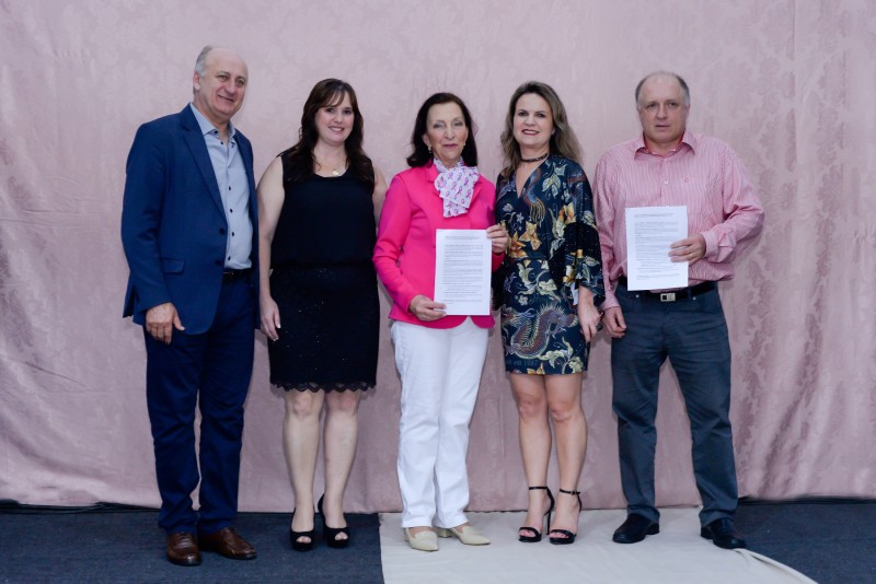 O prefeito de Videira Dorval Borga e a idealizadora da Revista Rosazul, Dirce Schmitt também assinaram o convênio como testemunhas.