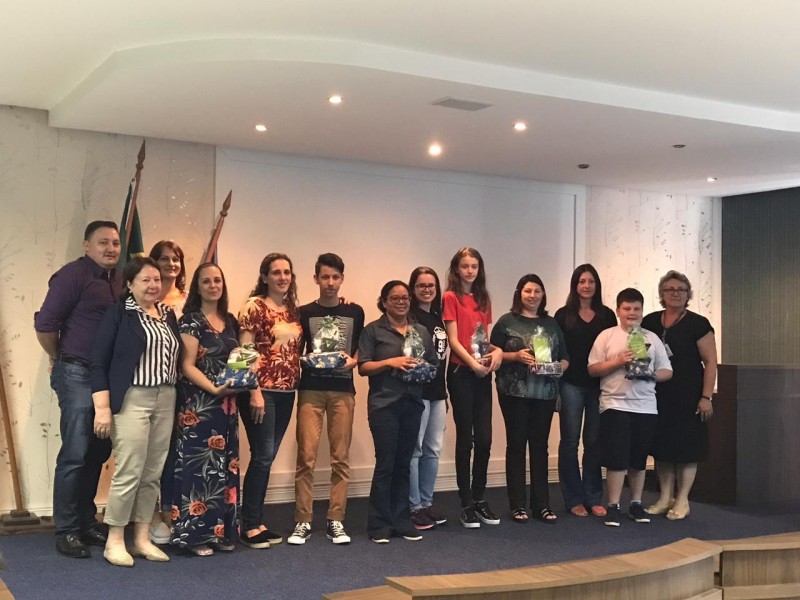 Na categoria redação (alunos do 6º ao 9º ano), a vencedora na etapa local foi a aluna Liandra Ferreira, estudante do 7º ano da Escola Municipal Criança do Futuro- CAIC. Ela foi orientada pela professora Daiana Cristina Pedro. Já na categoria desenho (alunos de 1º ao 5º ano), a vencedora foi Nicoly Chernoski Tavares, estudante do 4º ano da Escola Municipal Vilson Pedro Kleinubing. O trabalho de Nicoly foi supervisionado pela professora Josiane Aparecida Zago.