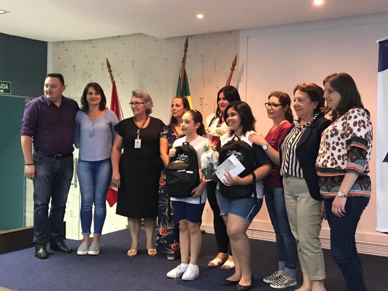 Liandra e Nicoly concorreram com mais de 800 estudantes das nove escolas da Rede Municipal de Ensino de Videira. Para as duas vencedoras a CDL Videira entregou um prêmio de R$ 250,00, cada. Além disso, elas receberam um kit com mochila e materiais escolares enviado pela FCDL/SC, promotora do Concurso. Os professores orientadores também receberam um kit de material da FCDL. Além disso, para valorizar o esforço dos alunos, neste ano, a CDL também articulou junto ao Sicoob Videira e ao comércio local, a doação de kits com brindes aos 15 finalistas da etapa municipal. “Sempre premiamos o trabalho dos dois alunos finalistas, no entanto, o envolvimento dos estudantes e a qualidade dos trabalhos foram tão bons que todos que foram selecionados na etapa municipal foram presenteados”, explica a diretora cultural da CDL, Ivonete Zani.