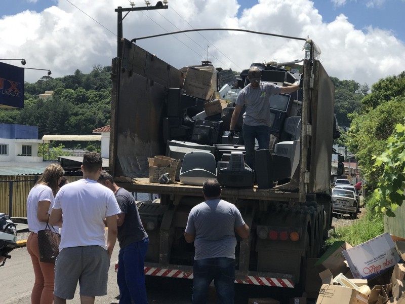A 21ª Edição do Projeto Recicla CDL que aconteceu no último sábado (1º), em Videira, bateu o recorde de recolhimento de lixo eletrônico de todas as edições realizadas no município. Segundo o presidente da entidade, José das Neves Olivo, foram recolhidos 16.400 kg de equipamentos eletrônicos inservíveis, além de 100 lâmpadas, 30 tonners e centenas de pilhas. Nosso recorde anterior era 14 toneladas, número que foi superado no último sábado, quando a empresa que é nossa parceira no recolhimento do lixo teve que enviar um segundo caminhão para recolher as mais de 16 toneladas entregues pelos videirenses.