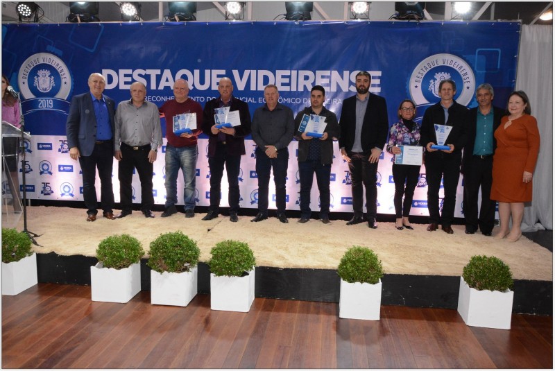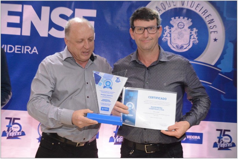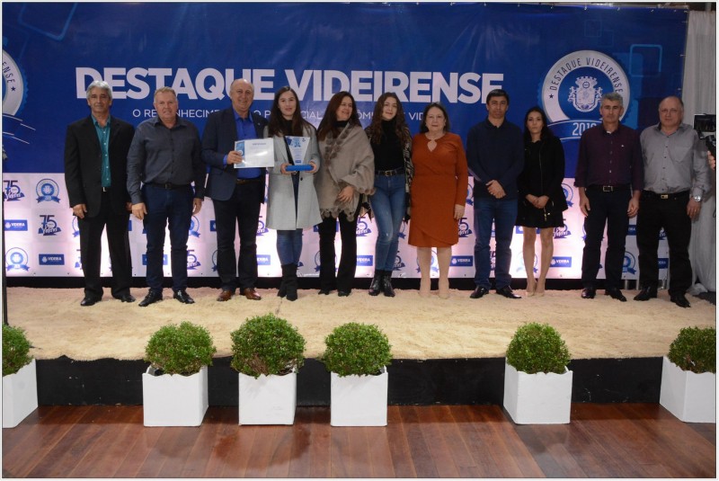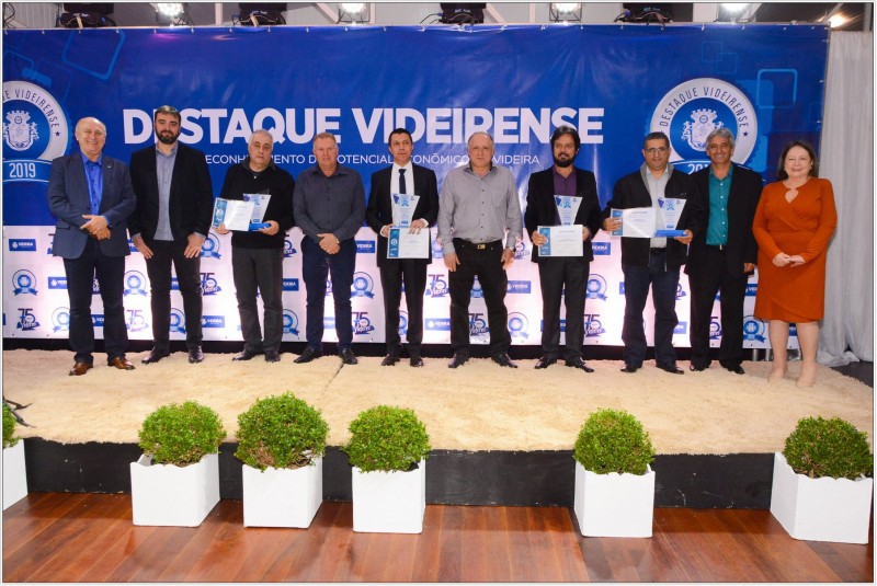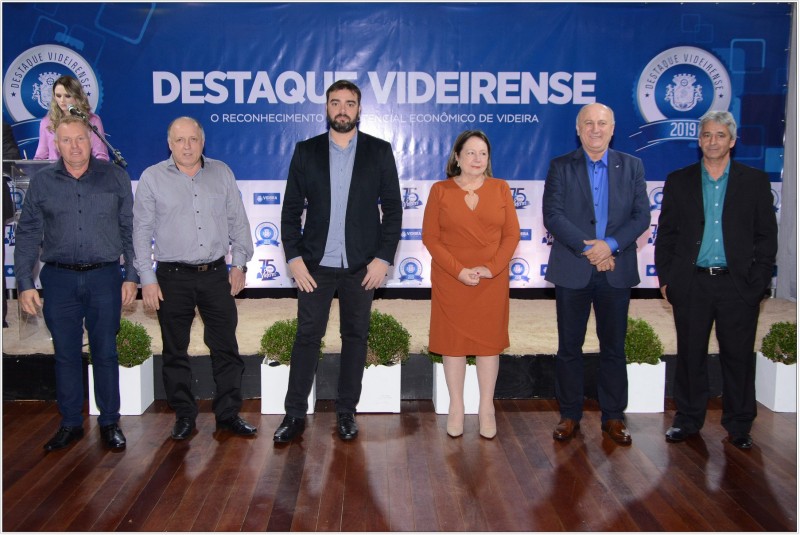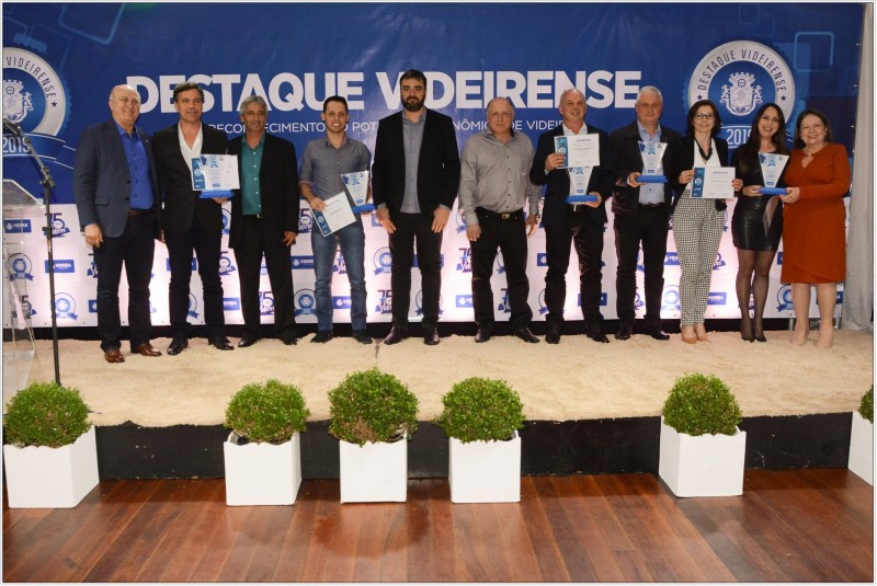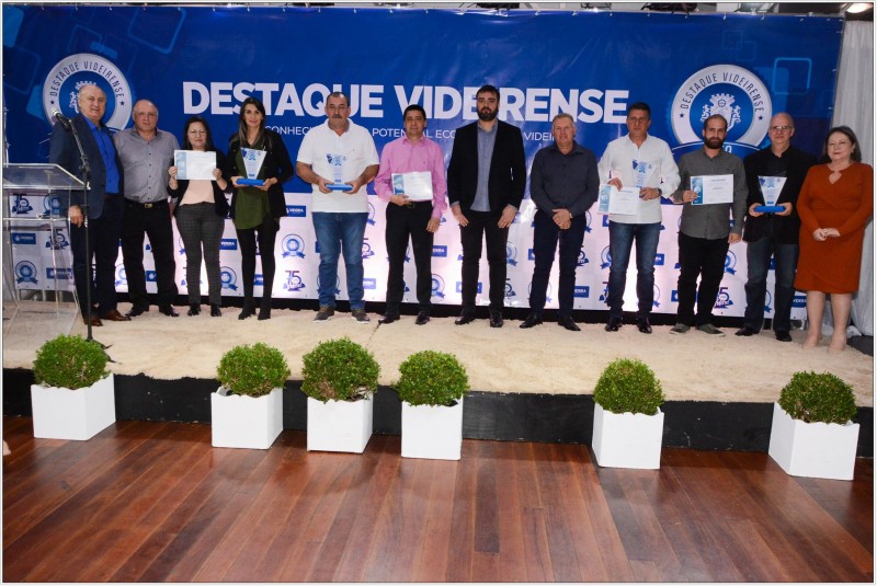 A Câmara de Dirigentes Lojistas de Videira (CDL), por meio do seu presidente José das Neves Olivo prestigiou, na noite de quarta-feira (7), a solenidade do prêmio Destaque Videirense. Promovida pela Prefeitura de Videira como forma de reconhecer e valorizar as maiores empresas e produtores rurais na geração e recolhimento de impostos, a premiação aconteceu, na SERP e reuniu autoridades e empresários dos mais variados segmentos.