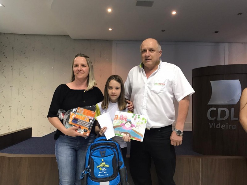 Na categoria desenho, destinada aos estudantes do 1º ao 5º ano a vencedora foi a estudante Maria Eduarda Vockes, aluna do 5º ano do CAIC, no Bairro Campo Experimental. Ela foi orientada pela professora Sandra Gaio Zuffo. Já na categoria redação, para estudantes do 6º ao 9º ano, a campeã municipal foi a Ana Paula dos Santos, aluna do 9º ano da Escola Prefeito Waldemar Kleinubing, localizada no Floresta.O título da redação orientada pela professora Maristela Demartini Freschi foi Devemos nos preocupar com o agora!. As duas primeiras colocadas receberam da FCDL/SC, promotora do Concurso, um kit contendo mochila e material escolar, além de um cheque de R$ 250,00, como presente da CDL Videira.