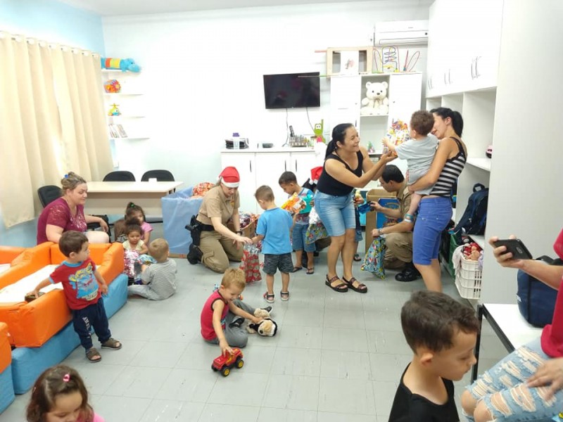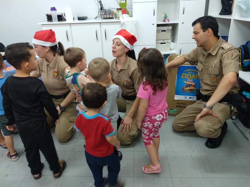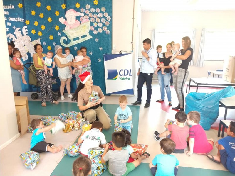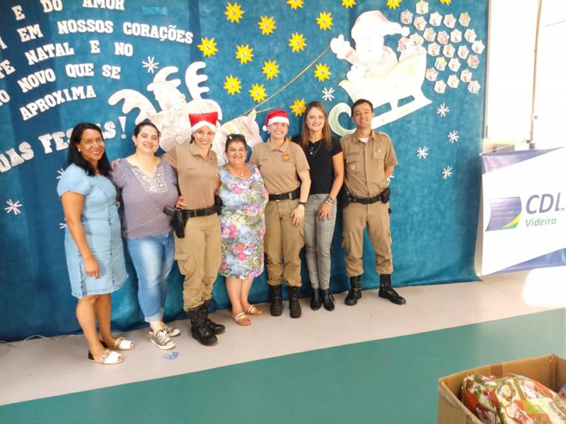 Na manhã desta sexta-feira, 20, a Polícia Militar de Videira, juntamente com a gestora executiva da Câmara de Dirigentes Logistas (CDL) de Videira, Larissa Seemann Perondi e representantes da secretaria municipal de Educação, realizou a entrega dos brinquedos arrecadados durante a campanha intitulada A BRINCADEIRA AGORA É DOAR, que ocorreu entre os dias 21 de novembro e 16 de dezembro.