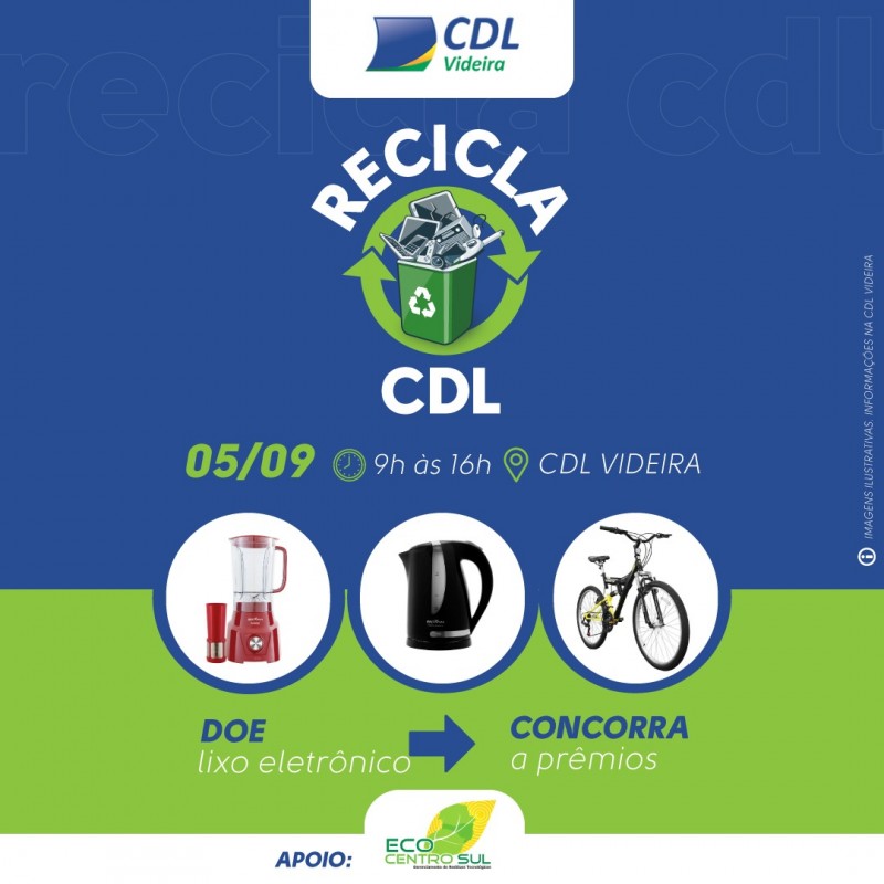 Que tal descartar adequadamente o lixo eletrônico da sua casa e ainda concorrer a prêmios incríveis? A CDL Videira em parceria com a empresa Eco Centro Sul vão te ajudar nessa tarefa! No próximo dia 05 de setembro acontece mais uma edição do Recicla CDL. Esta será a 26ª Edição do projeto que já recolheu cerca de 260 mil quilos de lixo eletrônico dos videirenses.