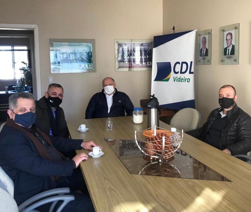 O presidente da CDL Videira, Fernando Taffarel Favero e o diretor financeiro da entidade, José das Neves Olivo receberam nesta quarta-feira (27), a visita do presidente da CDL de Joinville, José Manoel Ramos e o gestor executivo daquela instituição – Max Soel da Silva.