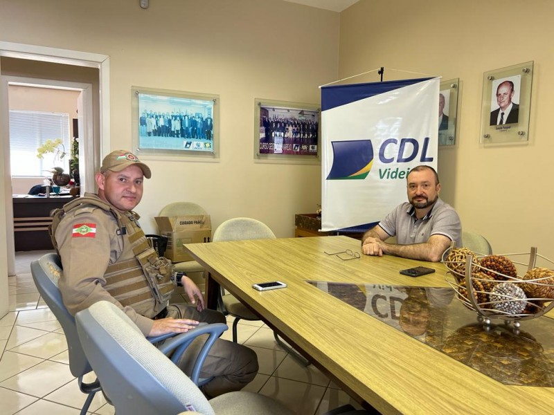 Para ampliar a segurança na cidade, para consumidores e lojistas, o presidente da CDL Fernando Tafarel Favero e o comandante da Polícia Militar de Videira – tenente Luis Henrique Fogaça de Almeida firmaram parceria para que a PM, intensifique o policiamento, neste período, quando vários policiais estarão circulando a pé, pelo Centro.