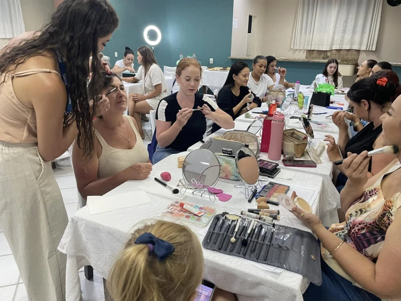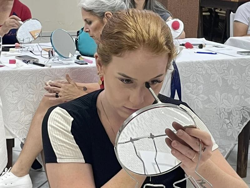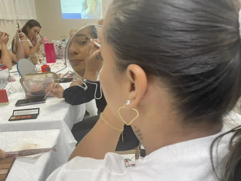 O curso de automaquiagem com a professora da Faculdade SENAC – Liziane Fiorelli, aconteceu nesta sexta-feira (15) e ensinou o passo a passo para limpar, hidratar, preparar, maquiar a pele e deixar as mulheres ainda mais bonitas e confiantes.