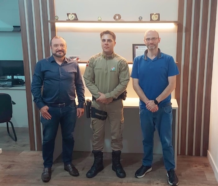 Favero e Gardini compartilharam com os representantes da PM a preocupação dos lojistas e da comunidade em relação a recente onda de furtos no comércio de Videira e conheceram as ações que a PM vem realizando para conter e previnir novos casos.