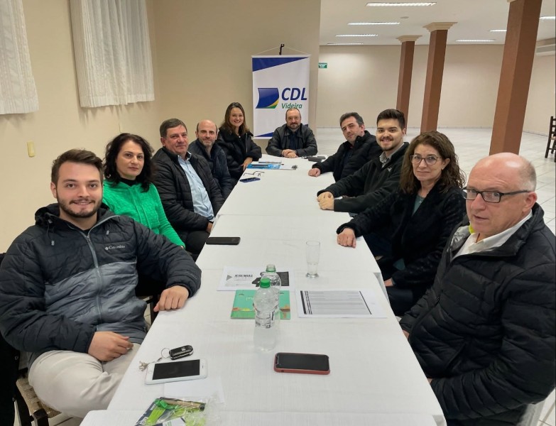 Na pauta estiveram os seguintes assuntos: participação da entidade na Campanha de arrecadação de fundos, promovida pela FCDL/SC em prol do Rio Grande do Sul atingido, recentemente, pelas enchentes; o reconhecimento recebido pela CDL do CODEVI – Conselho de Desenvolvimento de Videira, no lançamento do Projeto Videira 2044 e a parceria firmada entre a FCDL por meio da CDL Videira, Sicoob e Secretaria Municipal de Educação para a implantação do Projeto Educação Financeira nas escolas.