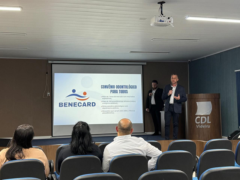 A CDL Videira em parceria com a Benevitta Gestão de Negócios apresentou aos associados da CDL, na noite desta quinta-feira (22), mais um benefício para transformar a forma de os empresários cuidarem da saúde de seus colaboradores e do seu negócio. A partir de agora, associado CDL e seus colaboradores contam com o Bennecard que oferece convênio odontológico para todos, com o preço, a qualidade e a diversificação de procedimentos mais completa do mercado.