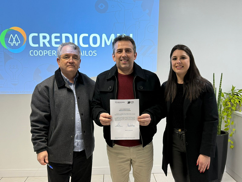 A Câmara de Dirigentes Lojistas de Videira (CDL) e a Cooperativa de Crédito Credicomin firmaram na noite desta segunda-feira (28), durante a reunião da diretoria da entidade, mais uma parceria para a promoção de ações associativistas e de desenvolvimento para a comunidade. O documento foi assinado pelo presidente da CDL – Felipe Parizotto e pelo presidente da Credicomin – Nilton Alves.