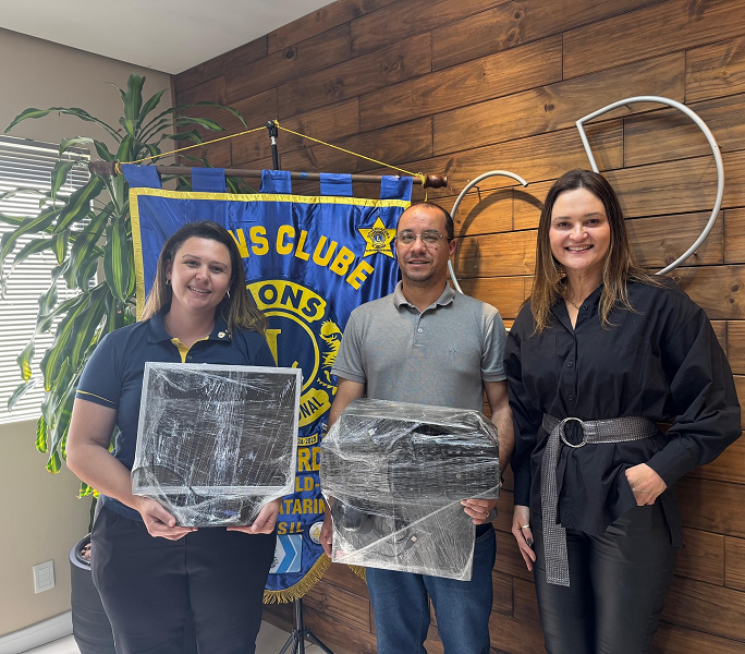 A entrega aconteceu nesta segunda-feira (29), para a presidente do Lions Clube Videira Perdizes – Claudia Santos e foi realizada pela gestora executiva – Larissa Seemann Perondi e pelo coordenador do curso de Ciência da Computação da Unoesc – Fabiano Wonzoski.