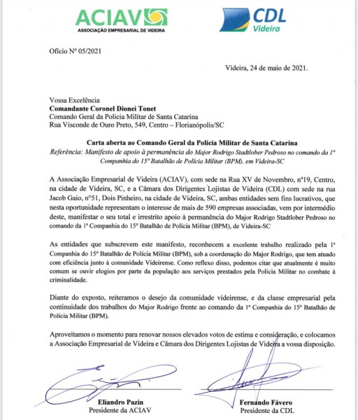 A Câmara de Dirigentes Lojista de Videira (CDL) lamenta profundamente a morte do diretor de…